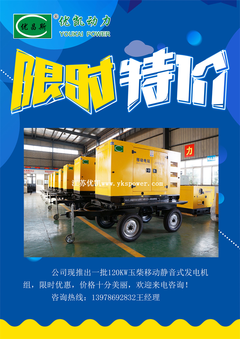 為感謝廣大客戶的支持,南寧優(yōu)凱動(dòng)力機(jī)電設(shè)備有限公司現(xiàn)推出一批120kw玉柴移動(dòng)靜音發(fā)電機(jī)組,限時(shí)特惠,歡迎新老客戶來電咨詢訂購(gòu)!